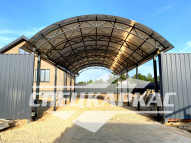 Компания «Спецкаркас» предлагает козырьки, беседки, навесы из поликарбоната любого типа и формата: одно- и двухскатные, прямые и наклонные, арочные и даже куполообразные.
